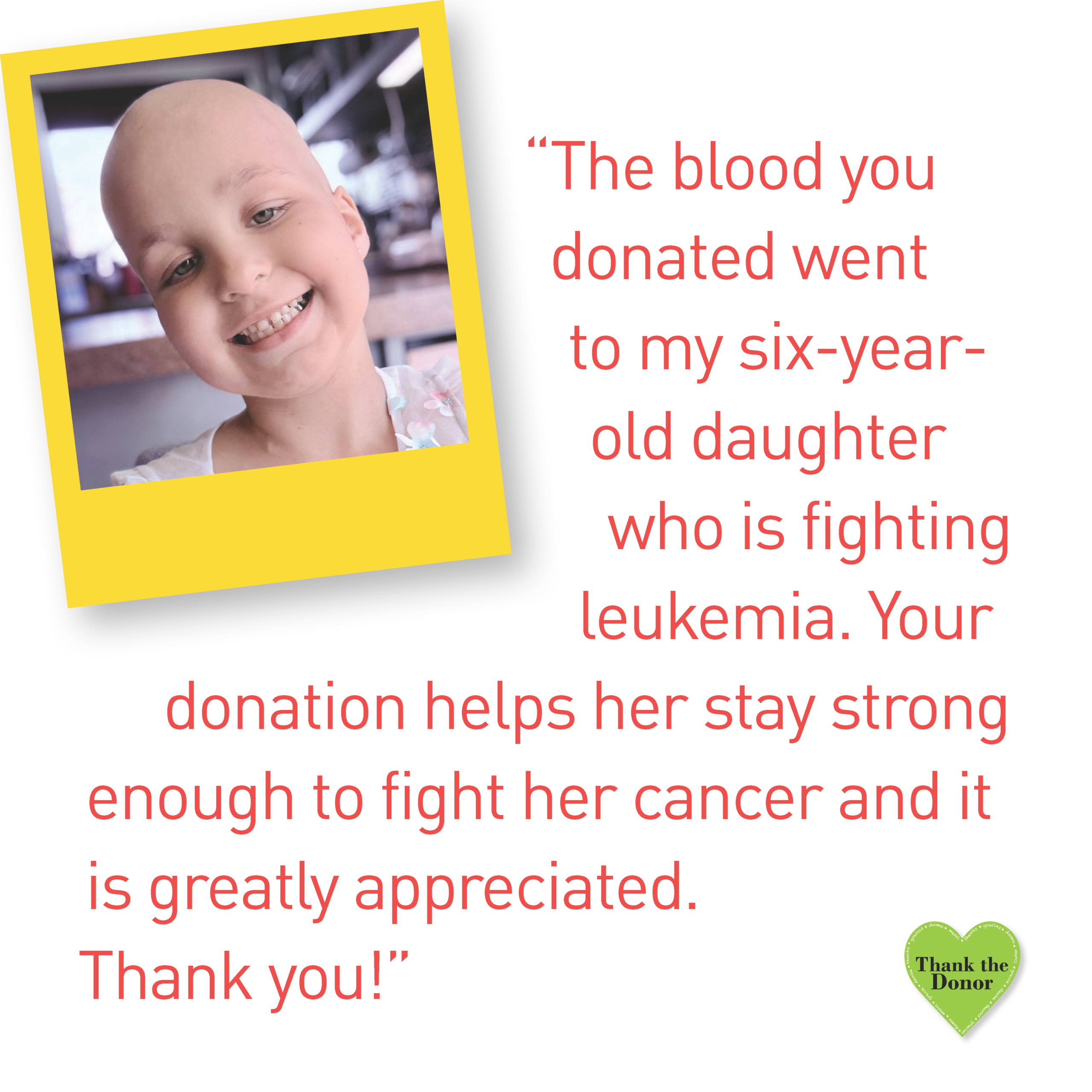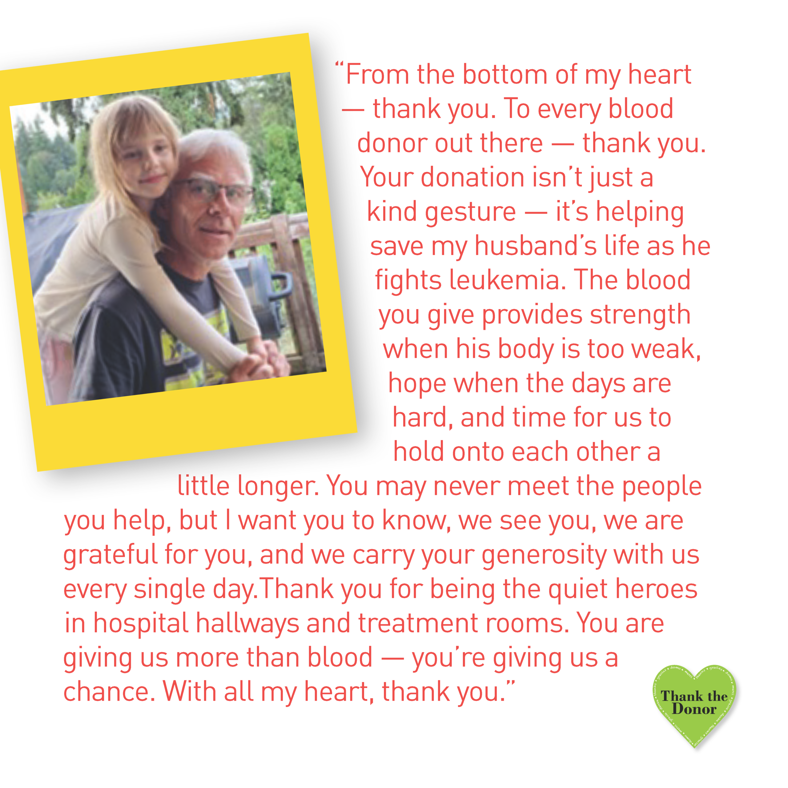 These are some of the 1000s of heartfelt messages of gratitude from friends and family of patients who have received lifegiving blood from Bloodworks Donors through the Thank the Donor Program.